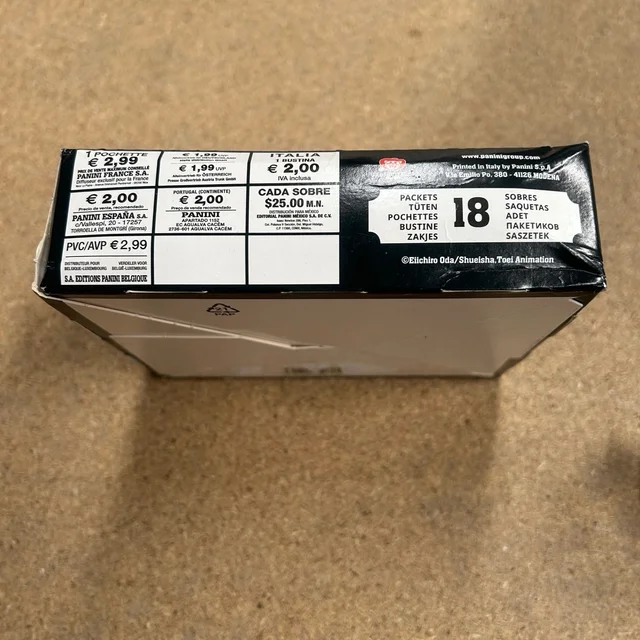 Caja de cartas coleccionables de One Piece de Panini. Contiene 18 paquetes.