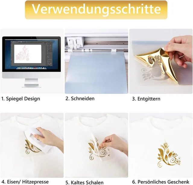 Rollo de vinilo textil con acabado oro metálico, ideal para plotter de corte.